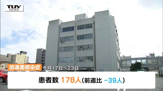 県衛生研究所によりますと、今月23日までの1週間で県内28の小児科定点医療機関から報告があった溶連菌感染症の患者数は前の週より39人減少し、178人です。