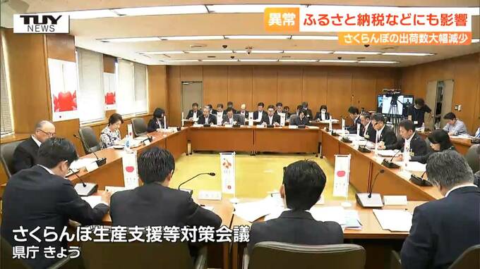 県産さくらんぼの今年の生産や販売状況と、今後の対策について確認する会議が、きょう開かれました。今年は収穫量が平年を大きく下回ることが予想され、すでに影響が出ています。