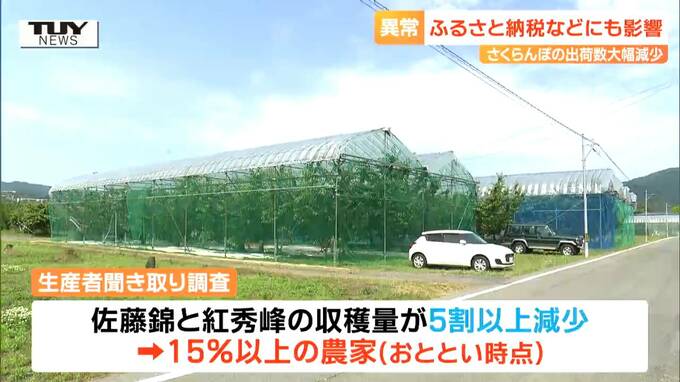 また、ふるさと納税のさくらんぼの返礼品については、数量不足の影響で少なくとも18市町村で予定通りに発送が行うことが出来ていないなど広く影響が出ています。
