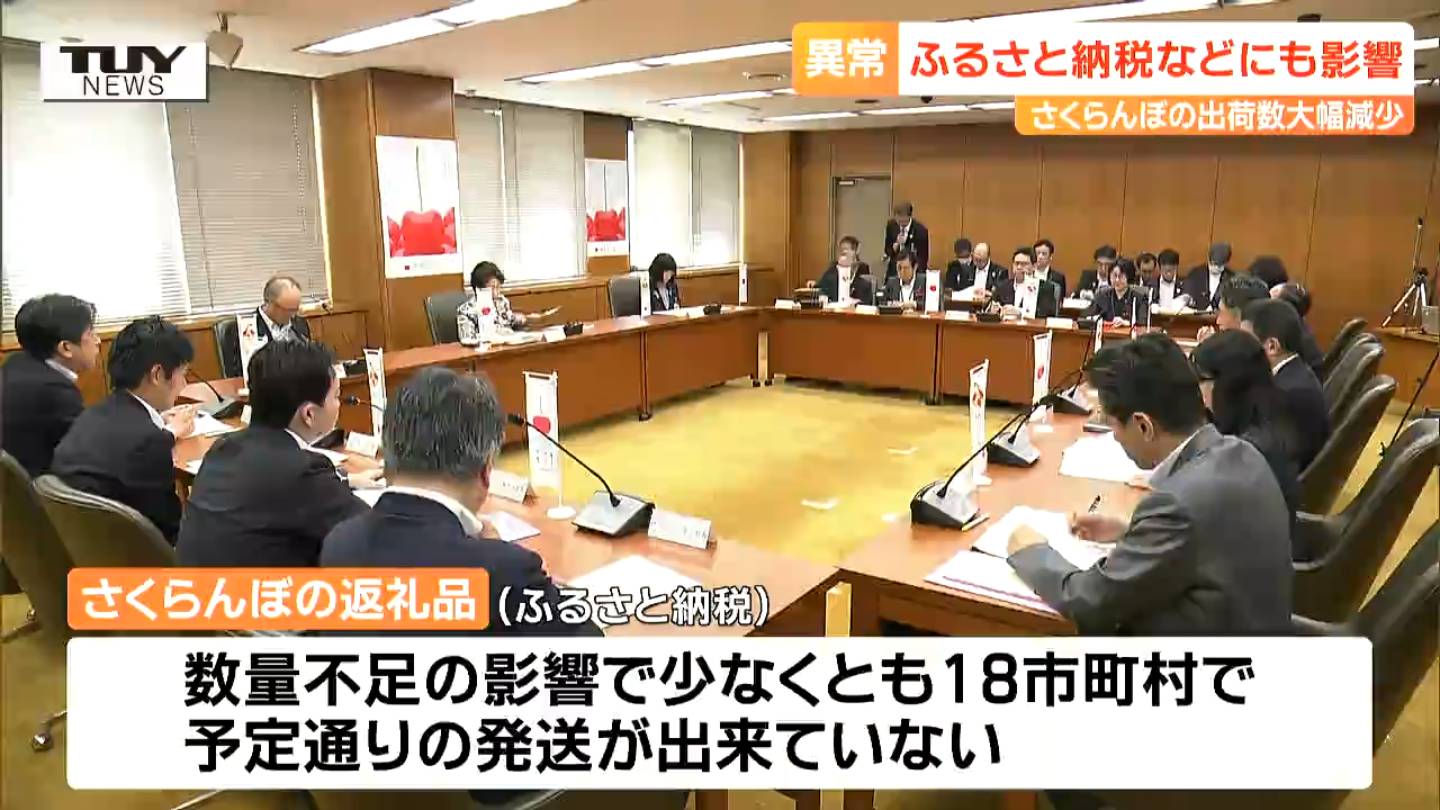 また、ふるさと納税のさくらんぼの返礼品については、数量不足の影響で少なくとも18市町村で予定通りに発送が行うことが出来ていないなど広く影響が出ています。