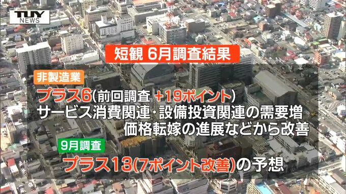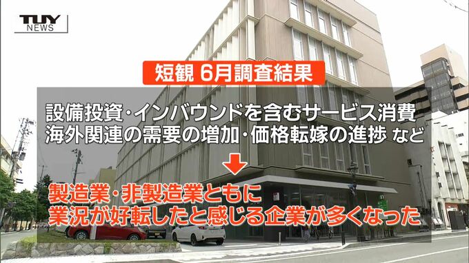 日銀山形事務所によりますと、設備投資や、インバウンドを含むサービス消費、海外関連の需要の増加や価格転嫁の進捗などから、製造業・非製造業ともに業況が好転したと感じる企業が多くなったということです。