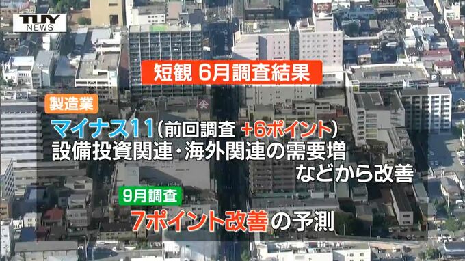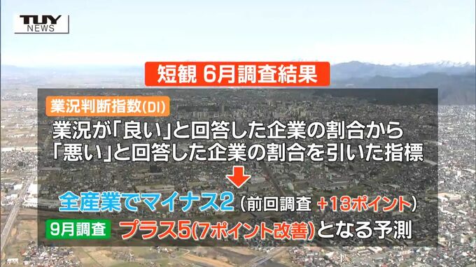 日本銀行山形事務所は、6月の県内企業の短期経済観測調査の結果を発表しました。
