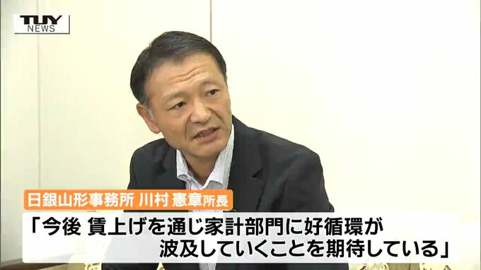 日銀山形事務所の川村憲章所長は「今回の調査では、収益の改善、企業マインドの回復、設備投資の増加という企業部門における好循環が観察された。今後、賃上げを通じ、家計部門に好循環が波及していくことを期待している」としています。