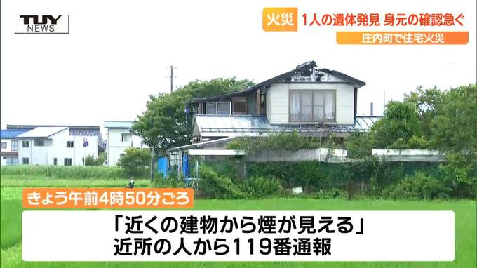 けさ、山形県庄内町で発生し、焼け跡から1人の遺体が見つかった住宅火災は、警察と消防が出火原因の特定を急いでいます。