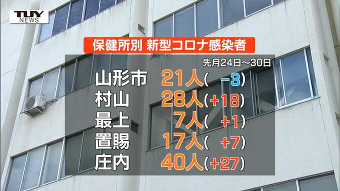 保健所別でみると、山形市を除く全ての保健所で感染者数が増加していて、村山が28人、庄内が40人などとなっています。