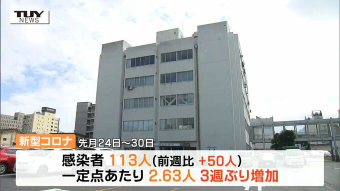 県衛生研究所によりますと、先月30日までの1週間に県内43の定点医療機関から報告された新型コロナの感染者は前の週より50人多い113人で、3週ぶりに増加しました。