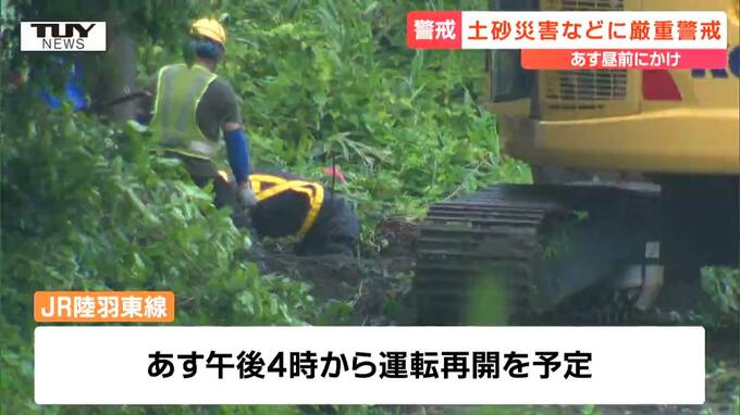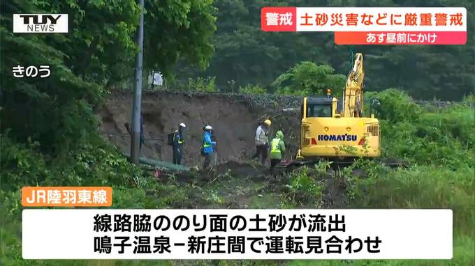 JR陸羽東線では、線路脇ののり面の土砂が流出したことで、鳴子温泉と新庄の間で運転見合わせとなっています。