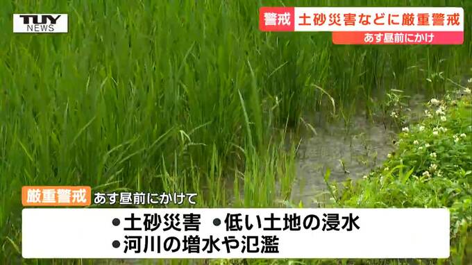 あす昼前にかけて土砂災害や低い土地の浸水、河川の増水や氾濫に厳重に警戒してください。