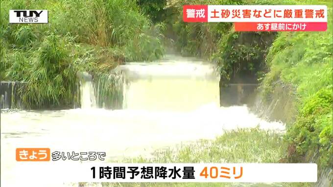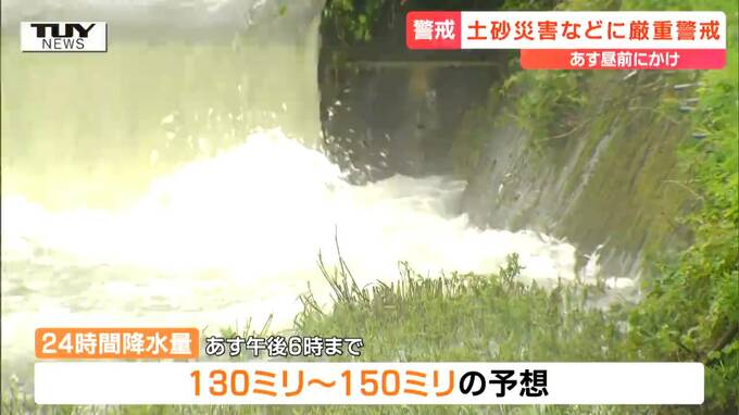 きょうは多いところで1時間に40ミリの激しい雨が降り、あす午後6時までの24時間で130ミリから150ミリの雨が降る予想となっています。