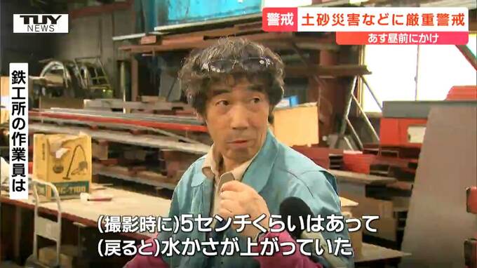 鉄工所の作業員「(撮影時に)5センチくらいはあって、(戻ると)水かさが上がっていたこの辺りまでは濡れている。いまだに乾かないから10センチくらいは水が上がったのではないか」