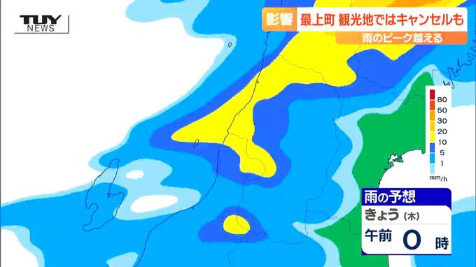 県内で最も多くの雨が降った最上町では、観光地でもキャンセルの被害が出ています。