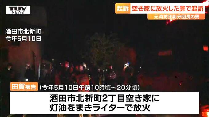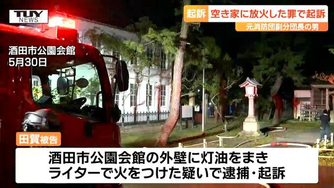 起訴状などによりますと、田賀被告は、5月10日の午後10時ごろから午後10時20分ごろまでの間、酒田市北新町2丁目の空き家に灯油をまいてライターで放火し、壁や天井などを焼いた罪に問われています。