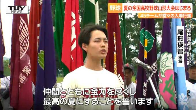 酒田東高校野球部 尾形瑛智 主将「我々、選手一同は、夏の暑い日も冬の寒い日も一意専心で野球に取り組み、日々、練習を積み重ねてきました。仲間とともに全力を尽くし最高の夏にすることを誓います」