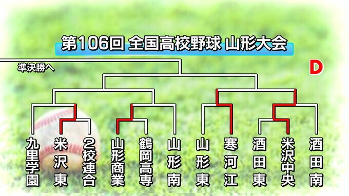 【山形】夏の高校野球 15日の結果 鶴岡東、東海大山形、日大山形、山形城北、羽黒、米沢中央が勝利(山形) 2024年7月15日(月) 15:52 国内 【Dブロック】 米沢中央 4-3 酒田南 九里学園 - 米沢東 (雨天中止) 山形商業 - 山形南 (雨天中止) 16日は、米沢市営野球場できょう雨天中止となった2試合が行われる予定です。