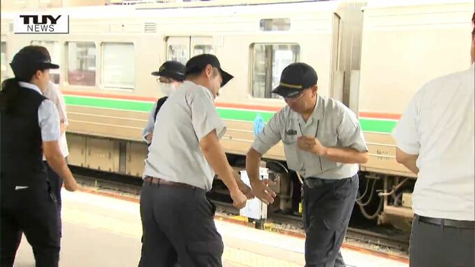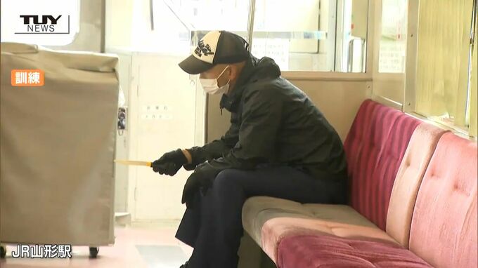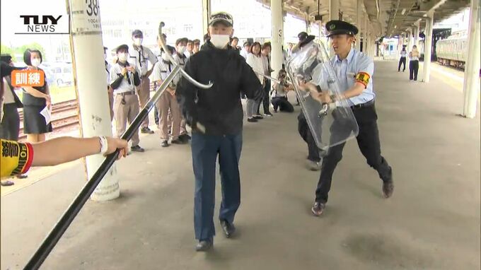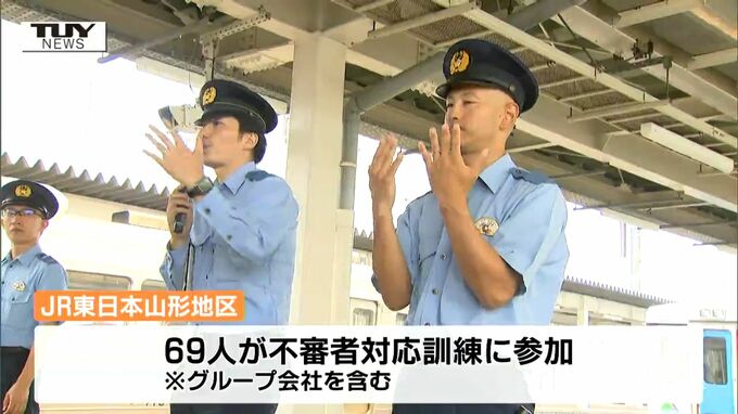 こうしたことを受け、JR東日本山形地区では、不審者に対応するための訓練を毎年警察と連携し行っていて、きょうは、グループ会社なども含め職員69人が参加し、不審者への対応方法を確認しました。