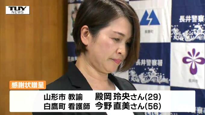 感謝状が渡されたのは、山形市に住む教諭・殿岡玲央さんと、白鷹町に住む看護師・今野直美さんです。