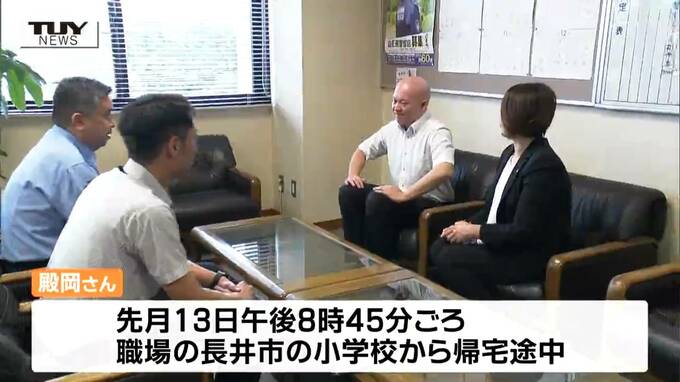 殿岡さんは、先月13日の午後8時45分ごろ、職場の長井市の小学校から帰宅する途中、杖をついて歩く高齢男性を不審に思い、声をかけました。