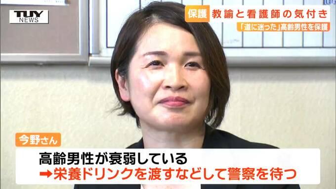 今野さんは、高齢男性が衰弱している様子とわかり、持っていた栄養ドリンクを渡すなどして、殿岡さんとともに警察の到着を待ちました。