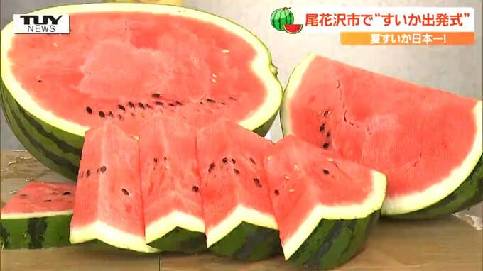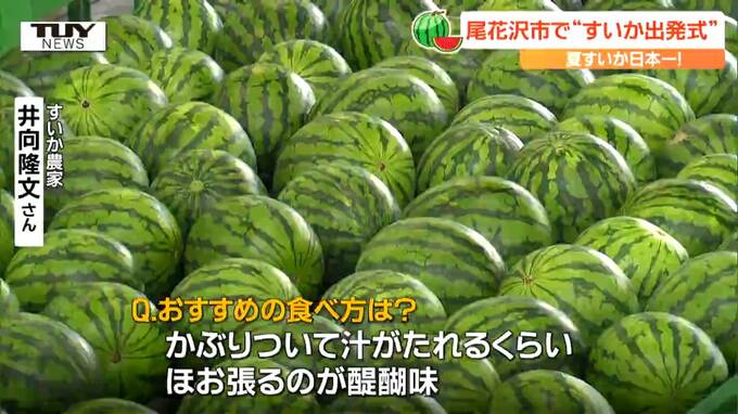 松浦亜実 記者「こちらが尾花沢産の大玉すいかです。早速私もいただいてみます。とっても甘いです。シャリっとした食感もあってみずみずしくておいしいです」