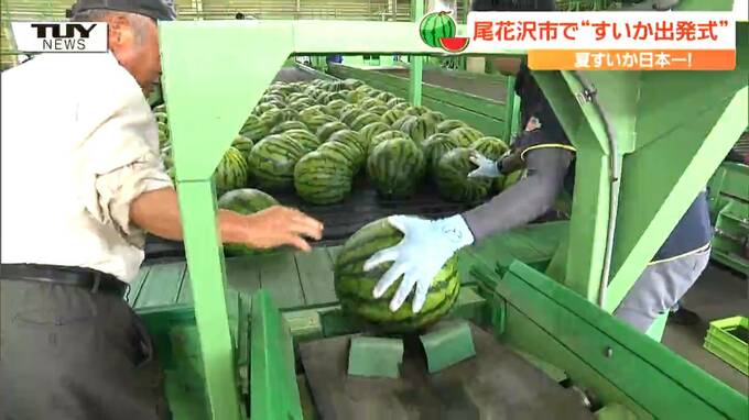 すいかの名産地、尾花沢市で、本格的な出荷がきょう始まりました。今年のすいかも良い出来になったということで、選果場では迫力の光景が広がっていました。