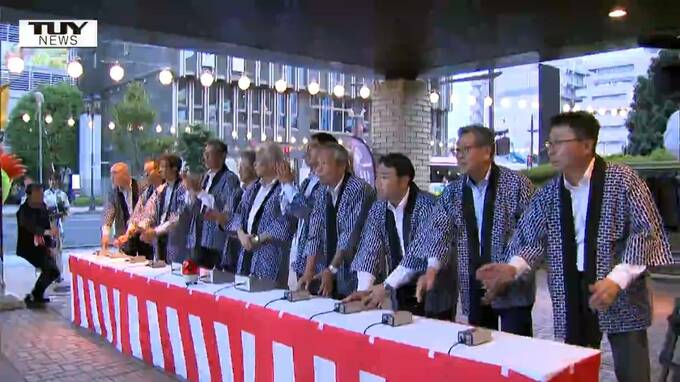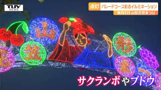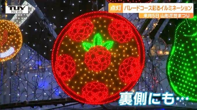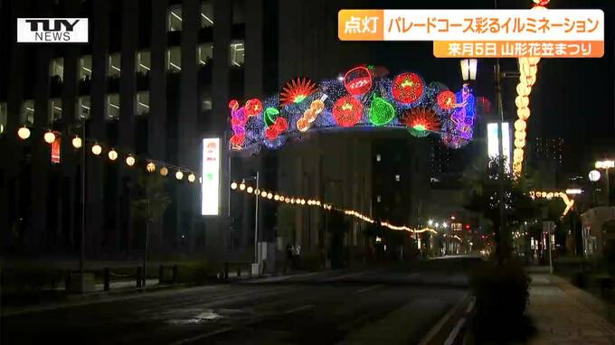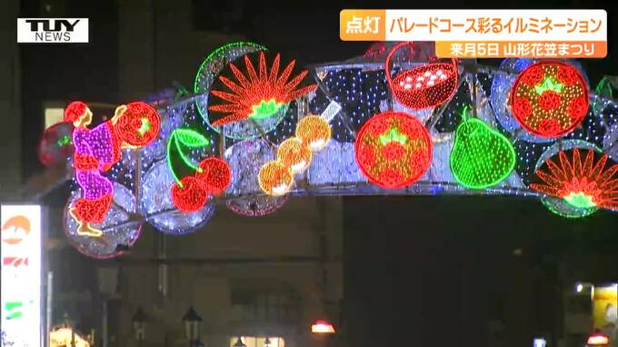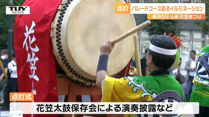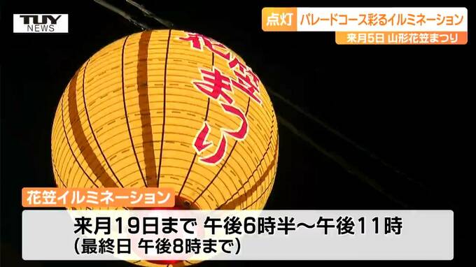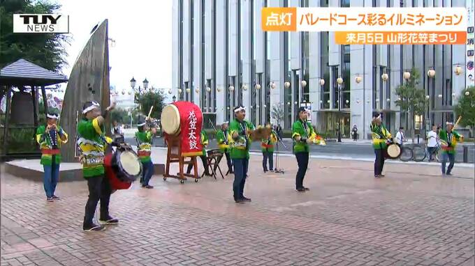点灯初日となったきのうは、点灯式が開かれ、花笠太鼓保存会による演奏が披露されるなど、まつりのムードを一層盛り上げていました。