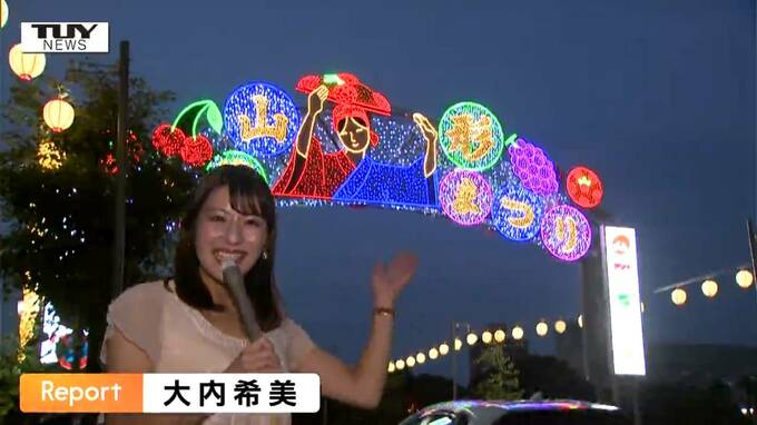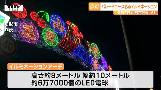 大内希美アナウンサー「今アーチが点灯し、祭りのパレードコースが一気に明るく華やかになりました。このアーチを見ると今年も山形の夏が来たなと、ワクワクが止まりません」