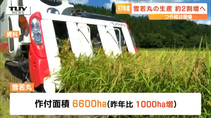 それによりますと、雪若丸は、高温に強く、全国での認知度があがり、需要が高まっていることなどから、作付面積は今年産より1000ヘクタール増やした6600ヘクタール、生産量はおよそ5900トン増やした3万8900トンとするということです。