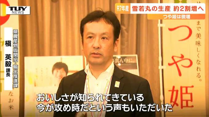県農産物販開拓・輸出推進課 槇英毅 課長「つや姫はトップブランド米高価格帯で、完全に認知されているという話を頂いた」