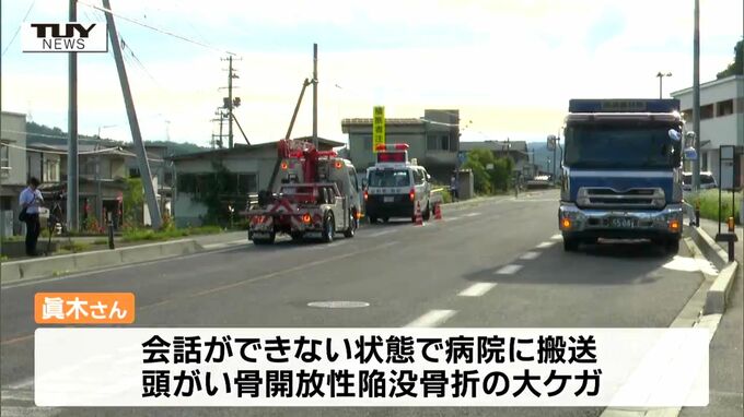 山形県寒河江市できのう起きた大型ダンプと軽トラックが衝突する事故で、病院に運ばれた高齢男性が頭の骨を折る大ケガをしていたことがわかりました。