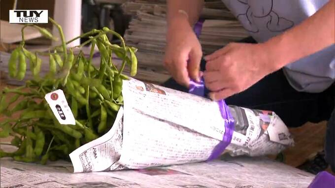 花束のように丁寧に包まれた枝付きのだだちゃ豆も人気を集めていました。
