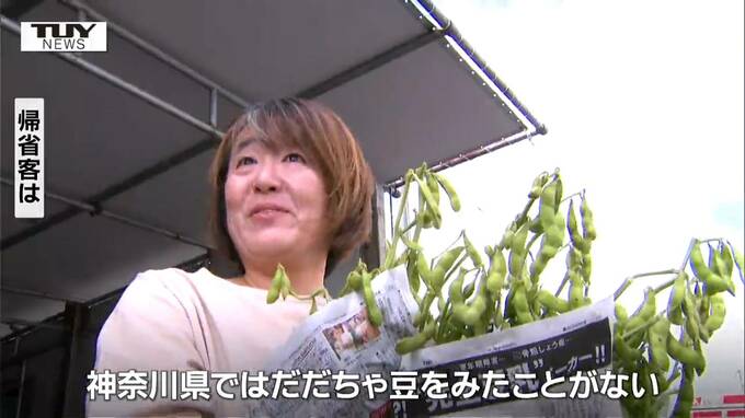 帰省客は「神奈川県ではだだちゃ豆をみたことがない。だから枝付きで買いたいなぁと」