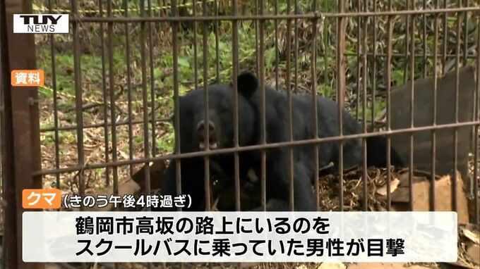 警察によりますと、きのう午後4時過ぎ、鶴岡市高坂の路上にクマがいるのを、スクールバスに乗っていた男性が目撃しました。
