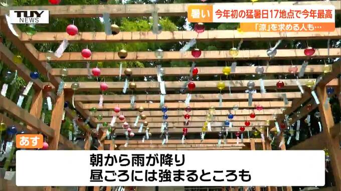 このほか、山形では34.9度となるなど、17の地点で今年最高の気温となりました。