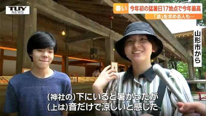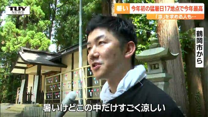 熊野大社では涼しさを感じる人たちがいた一方で、きょうは鶴岡で35.2度を記録し、今年初の猛暑日となりました。