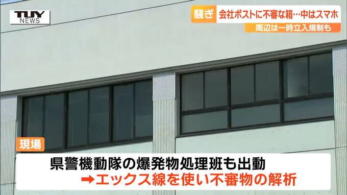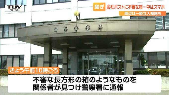 警察によりますと、きょう午前10時ごろ南陽市島貫の会社敷地内で、出入り口にあるポストの中に不審な長方形の箱のようなものがあるのを関係者が見つけ、警察署に通報しました。
