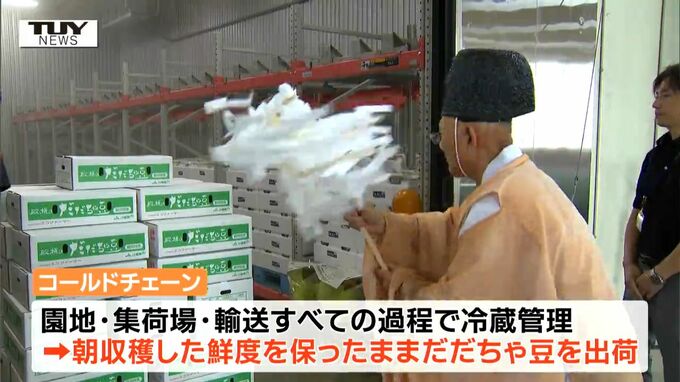 JA鶴岡では収穫しただだちゃ豆を、園地、集荷場、輸送すべての過程で冷蔵管理するコールドチェーンを行っていて、朝収穫した鮮度を保ったまま出荷を行なっているということです。
