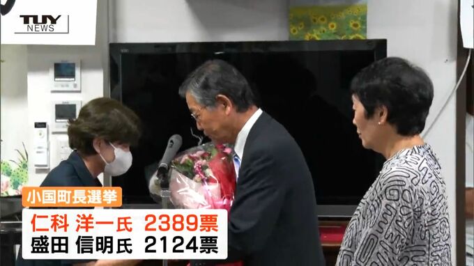任期満了に伴う小国町長選挙は、きのう投票と開票が行われ、現職の仁科洋一さんが3回目の当選を果たしました。