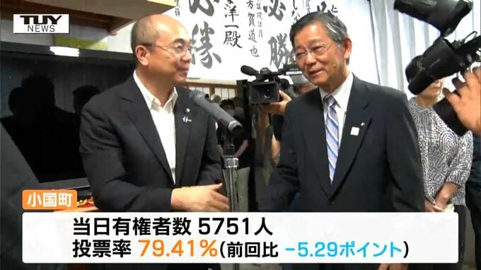 小国町の当日の有権者数は5751人で、投票率は79.41%となり、前回選挙戦より5.29ポイント下がりました。