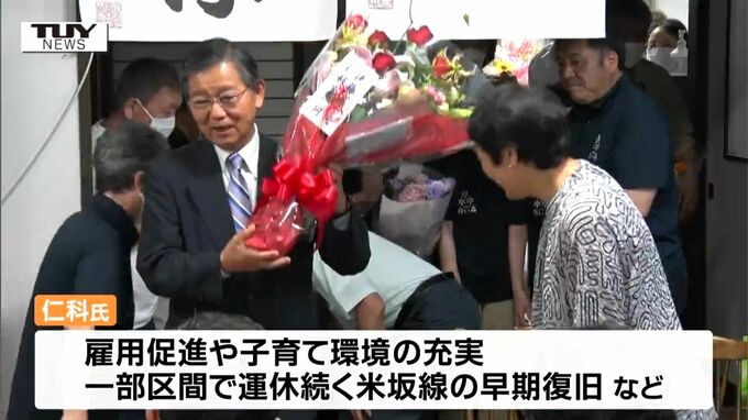 仁科さんは、雇用促進や子育て環境の充実のほか、おととしの大雨で一部区間で運休が続く米坂線の早期復旧などを訴えてきました。