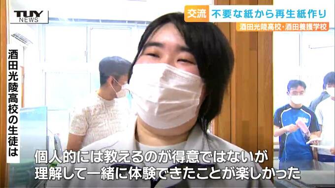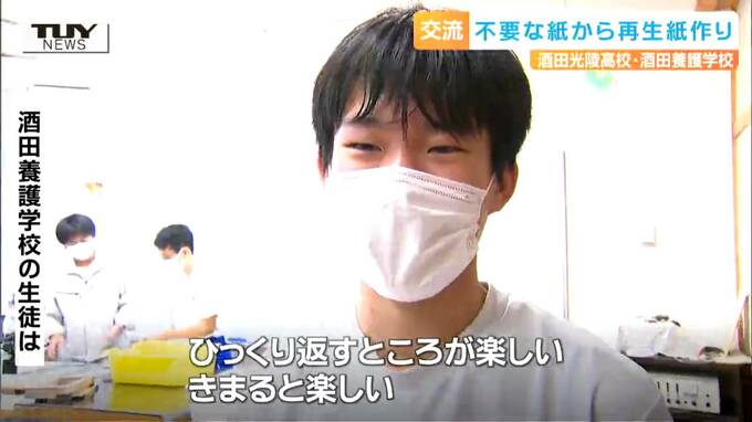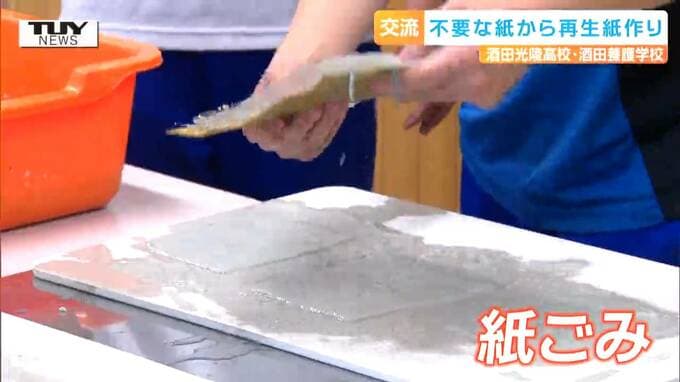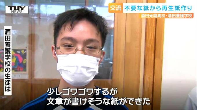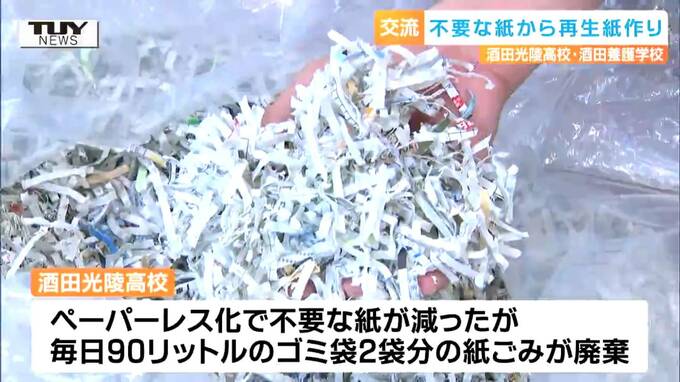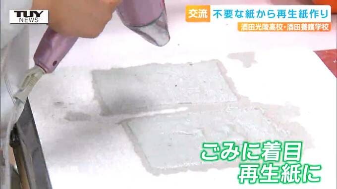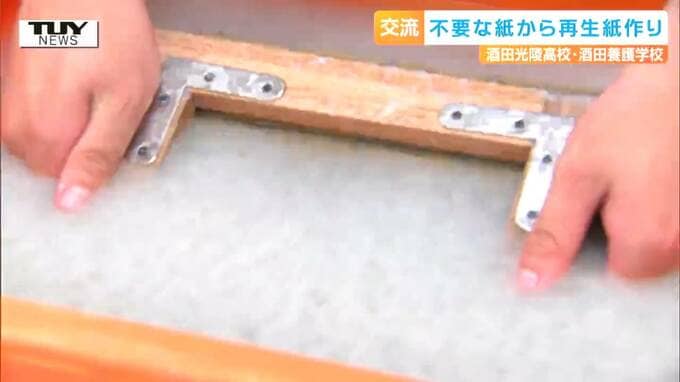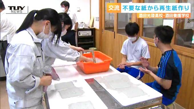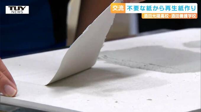 山形県酒田市では、酒田光陵高校と酒田養護学校の生徒が不要になった紙から再生紙を作る取り組みを行いました。