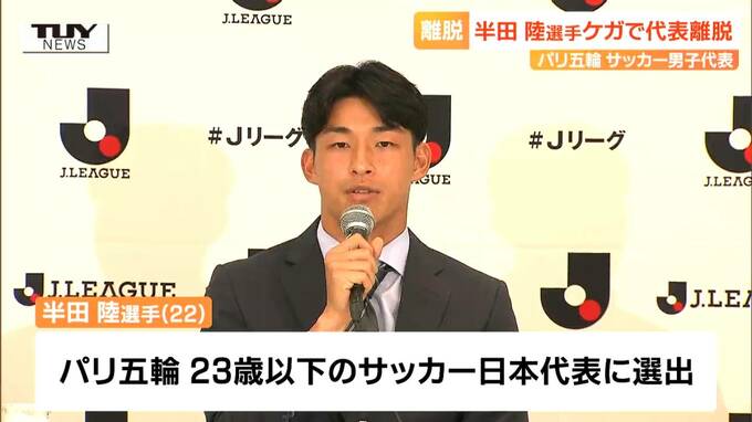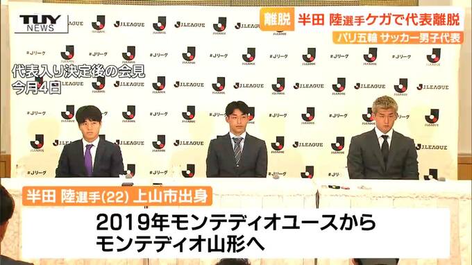 パリオリンピック™のサッカー男子代表に選ばれていた山形県上山市出身で、サッカーJ1ガンバ大阪に所属する半田陸選手がケガのため、代表を離脱することが発表されました。