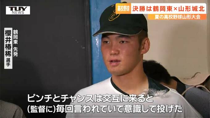 鶴岡東 先発 櫻井椿稀 選手「ピンチとチャンスは交互に来ると(監督に)毎回言われていたので意識して投げてました。最後は気持ちで投げた。(決勝は)自分の出来る限りのことはしっかりやりたい」