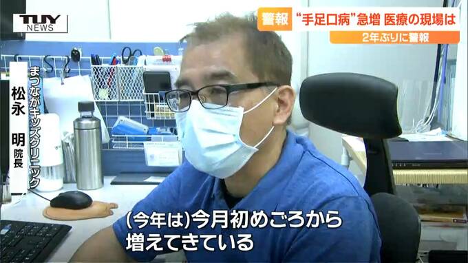 まつながキッズクリニック 松永明 院長「(今年は)今月初めごろから増えてきているかなという実感。2019年にも結構多かったが、それ以降はコロナでたぶんみんなお家にいたという関連もあって、しばらくそれほどでもなかった。今年はまた再び多いなという感じがします」