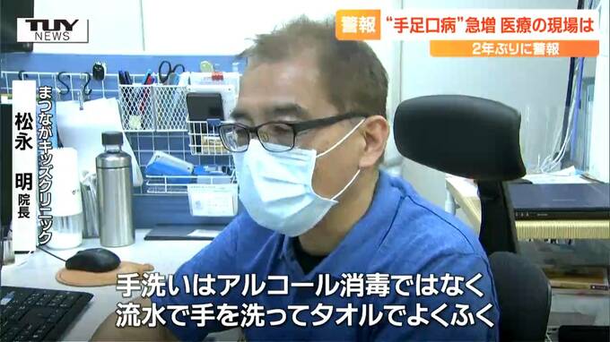 まつながキッズクリニック 松永明 院長「手足口病で間違いなさそうです。大人にもうつるので特におむつ交換をした後に手洗いをしっかりしてもらえたら」