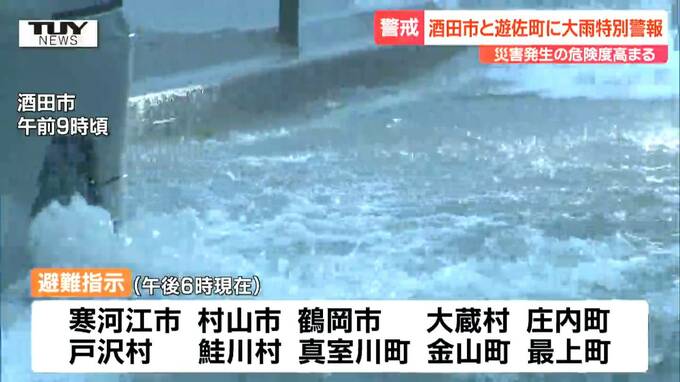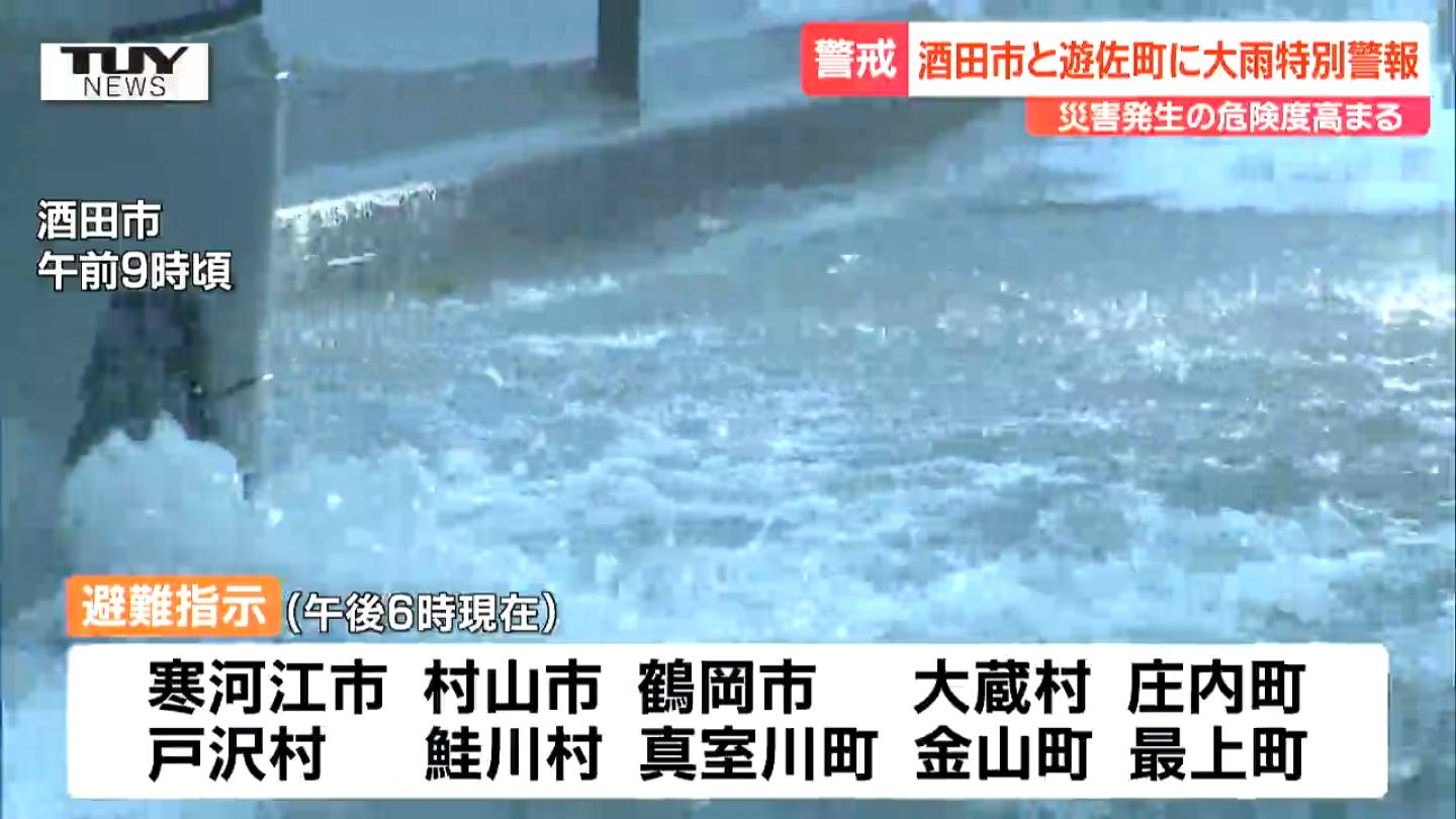 (午後6時現在)10つの市町村で避難指示が出され、このうち酒田市では小中学校やコミュニティセンターなどでのべ205人が避難しています。