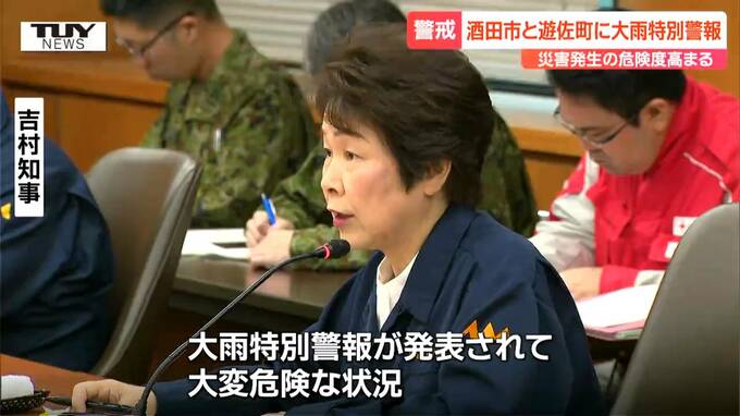 吉村知事「大雨特別警報が発表されて大変危険な状況となっている。県民の命を最優先とし市町村や関係機関とともに、県民への早めの避難を呼びかけながら避難者の安全確保に万全をきしてください」
