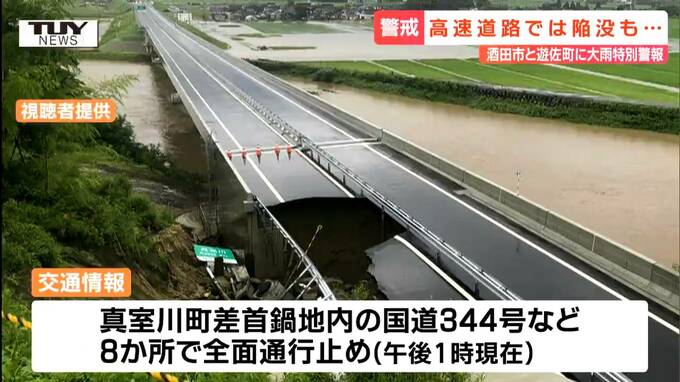 また、(午後1時現在)真室川町差首鍋地内の国道344号など8か所で全面通行止めとなっています。