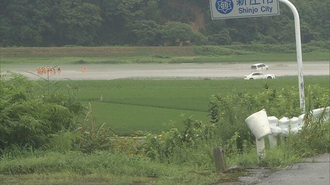 現場は、新庄市の本合海。河川ではなく、水田が冠水した場所とみられる。