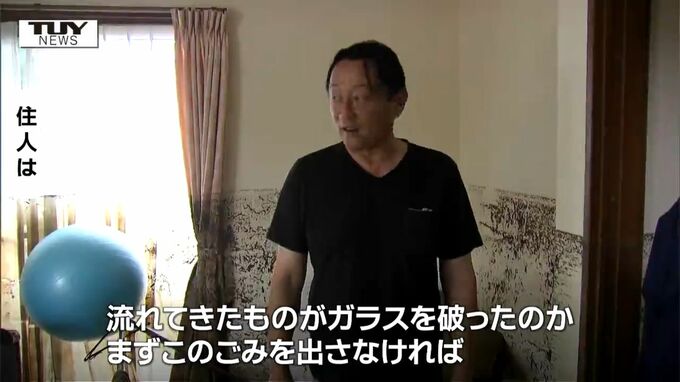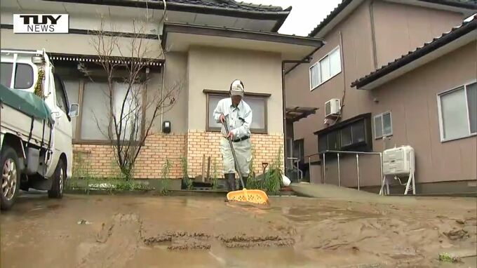 一夜明け、酒田市では、住人らが家の泥を掻き出す作業に追われていました。