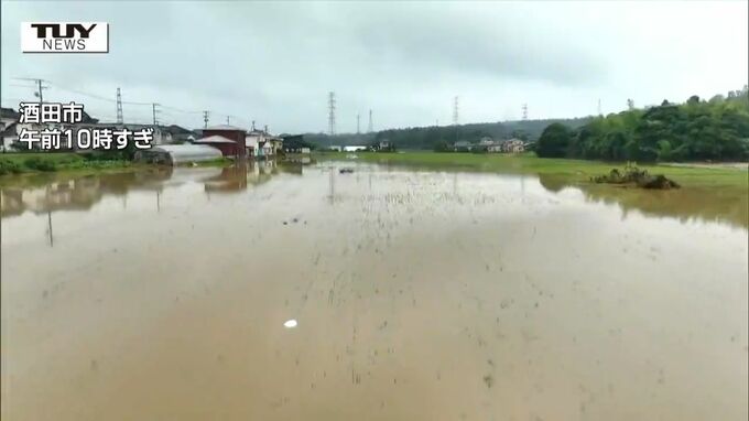 JNN取材団 阿部航介 記者「酒田市を流れる日向川です。私が歩いている堤防はここで決壊しています。川の水はここから集落に流れ込んだとみられます」